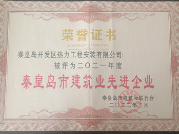 2021年(nian)秦(qin)皇島(dao)市(shi)建筑業先進企業