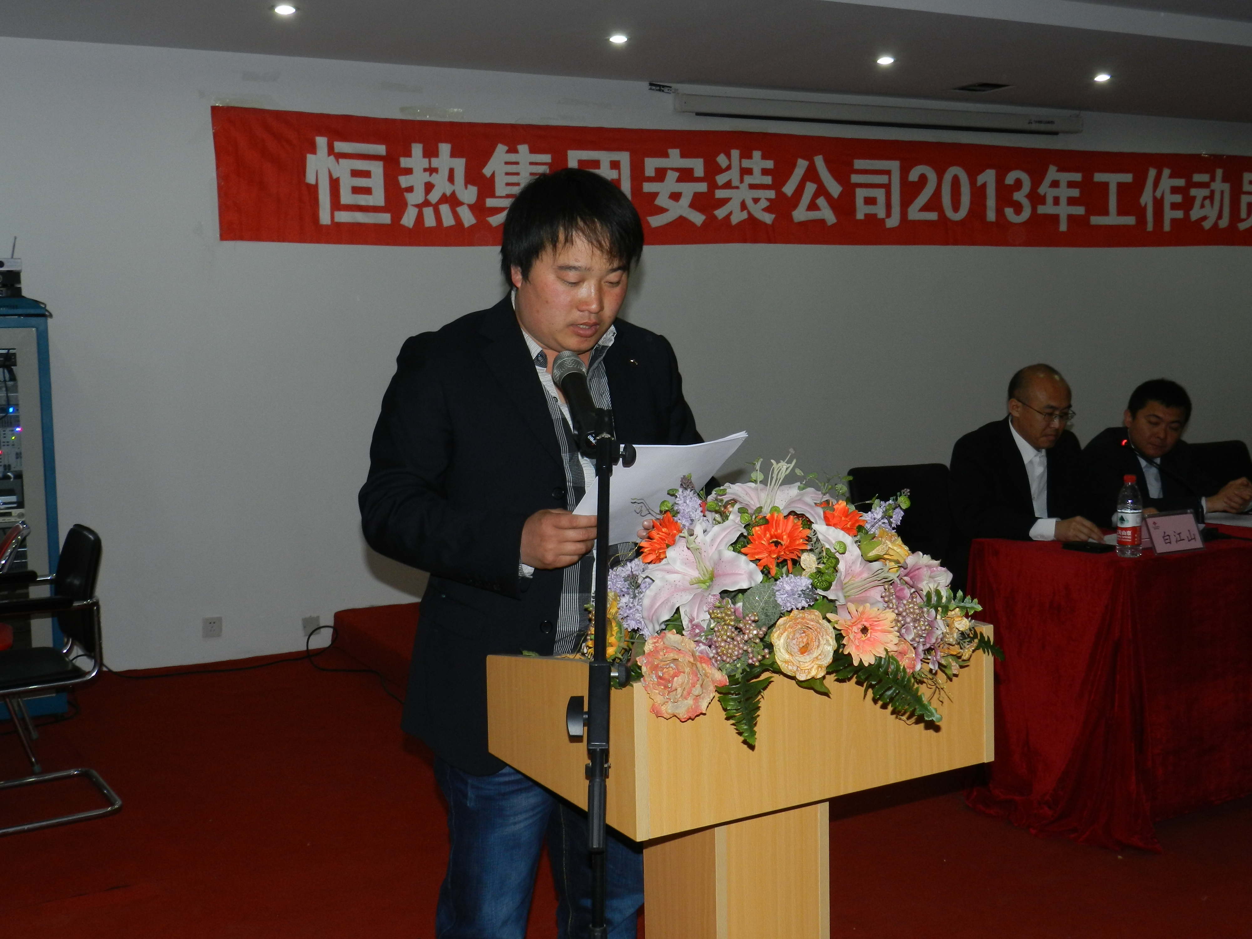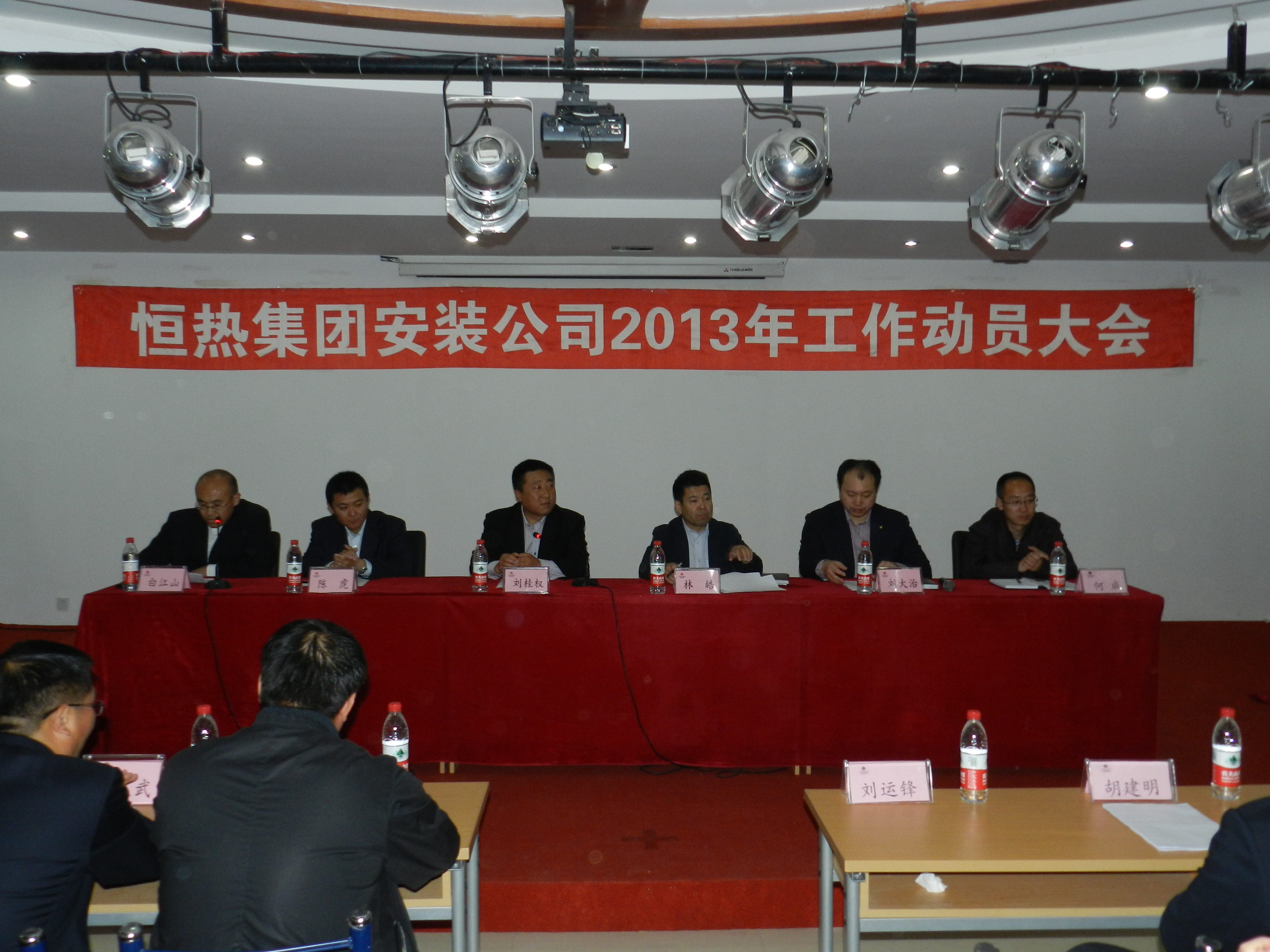 2013年5月9日(ri),上午8點(dian)30分(fen),在集團公司五樓會議室召開了恒熱集團安裝公司2013年工作動員大會(hui),出(chu)席大會(hui)的領導有:集團公司(si)財務總(zong)(zong)監(jian)劉大志、行政(zheng)總(zong)(zong)監(jian)林浩、生產運營總(zong)(zong)監(jian)何威、綜合部部長兼總(zong)裁助理陳虎、熱安安裝公(gong)司總經理劉桂權、工程(cheng)部部長(chang)白江山等公司領導,工程部(bu)部(bu)長白(bai)江山主持了整(zheng)個(ge)會(hui)議。在(zai)會(hui)上,首先由總經理劉桂權(quan)先生對2013年的工作提出了以下幾點要求:一、提高技術手(shou)段, 完善(shan)質量檢(jian)查控(kong)制(zhi)體(ti)系,加強竣工(gong)圖繪制(zhi)水(shui)平。二、提高預決算和成本管(guan)理能力,對(dui)項目機(ji)械、材料使用要定指標,控損耗。三、強化安全文明施工管理工作,切實(shi)保(bao)障安全生產(chan),樹立企業良(liang)好形象。四、開拓市場,加強工程(cheng)承攬力度。 五、加強(qiang)組(zu)織協調,重實效(xiao),保證(zheng)各(ge)項工作高效(xiao)運轉。然后由劉桂權經(jing)理分(fen)別與公司(si)各(ge)部門中層簽訂了績效合同,最(zui)后由集團公司(si)財務總(zong)監劉大(da)志(zhi)和行(xing)政總(zong)監代表集團公司對(dui)安裝公司2013年的重(zhong)點(dian)工(gong)作提出了(le)要求(qiu)。