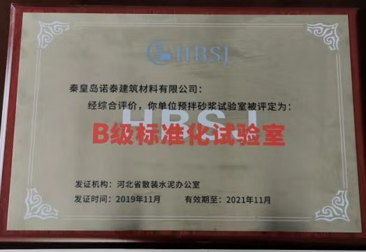 熱烈祝賀諾泰砂漿標準化實驗室榮譽稱號