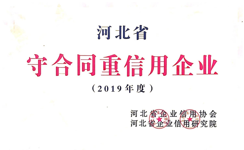 熱烈祝賀恒熱保溫公司 評為“2019年度河北省守合同重信用企業”