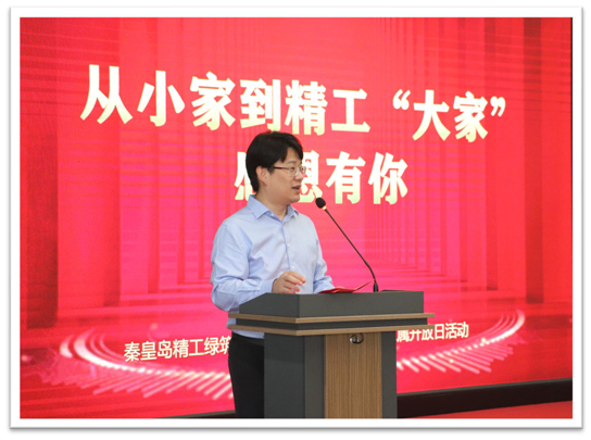 副總經理屠總講話,對員工親屬的到來表示歡迎,對一線生產員工加油、鼓勁