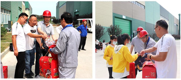 精工綠筑工廠管理人員為員工和家屬們發放禮品
