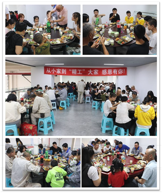 午餐時間,員工與家人們齊聚在干凈明亮的精工食堂,吃著可口的團圓飯,笑 著聊著,感受著精工大家庭的溫暖!幸福,洋溢在臉上,也寫進了心里!