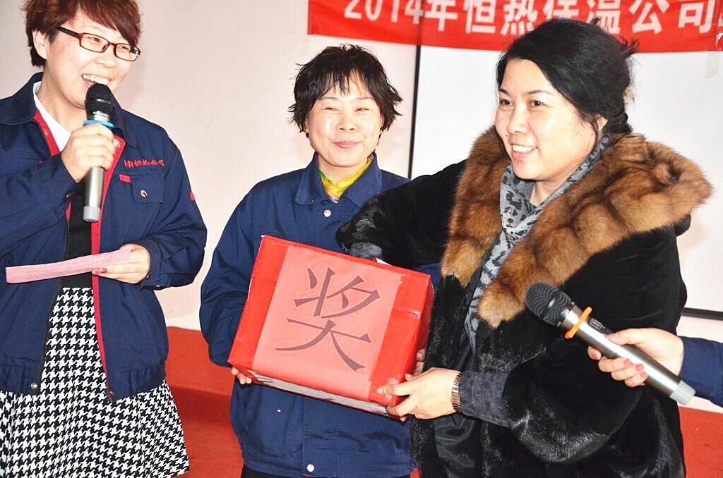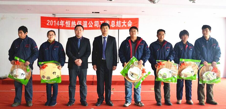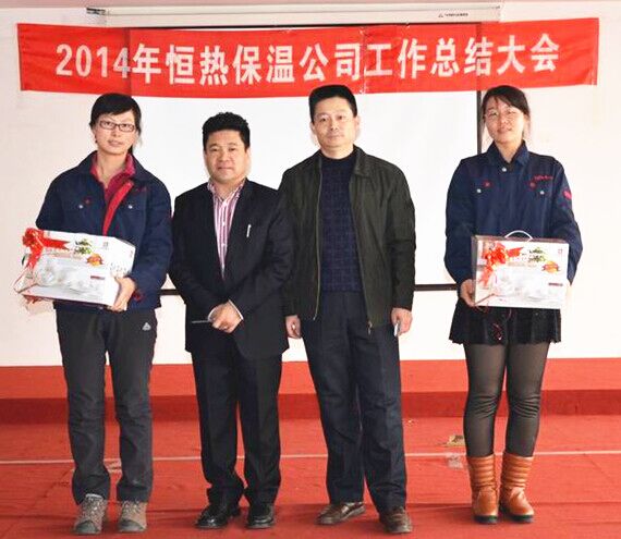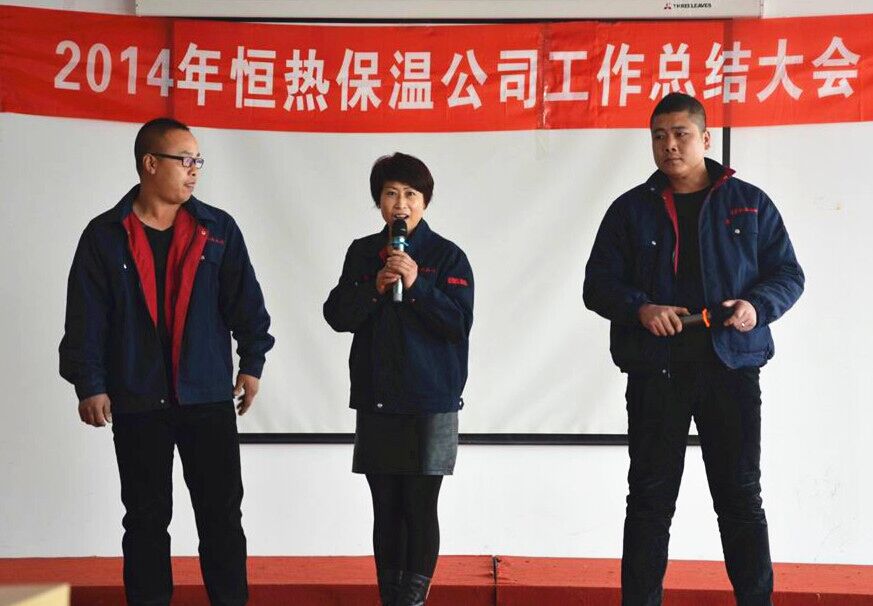 會議上首先由(you)恒熱保溫公司總(zong)經理王(wang)連民對2014年(nian)(nian)的工(gong)(gong)作(zuo)做了年(nian)(nian)終總(zong)結和2015年(nian)(nian)的重點工(gong)(gong)作(zuo)提(ti)(ti)出了要求,隨后(hou)管(guan)理層(ceng)代(dai)表(biao)朱建(jian)喜(xi)和員工(gong)(gong)代(dai)表(biao)王(wang)小壯發言,表(biao)達了管(guan)理層(ceng)和員工(gong)(gong)在2015年(nian)(nian)把工(gong)(gong)作(zuo)干好(hao)的決心。最(zui)后(hou)由(you)恒熱集(ji)(ji)團執行(xing)總(zong)裁(cai)高敏代(dai)表(biao)集(ji)(ji)團對恒熱保溫公司2014年(nian)(nian)工(gong)(gong)作(zuo)進行(xing)了總(zong)結并對2015年(nian)(nian)提(ti)(ti)出了寶貴的建(jian)議和要求。