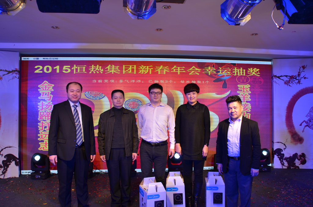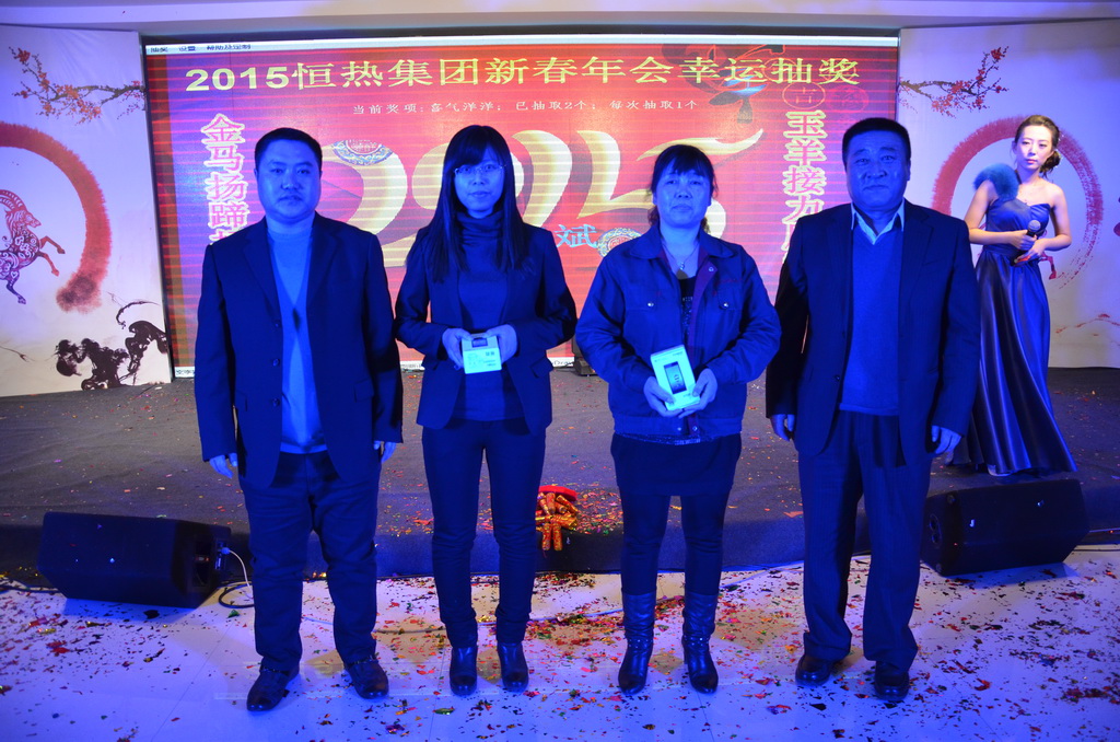 2015年2月14日上午10點整,在集團公司五樓會議室召開了“2015恒熱集團新春聯歡會”,出席本次活動的領導有:集團公司總裁楊寶江、集團公司執行總裁高敏、集團公司副總裁楊立國、財務總監劉大治、行政總監林皓、運營總監關軍、紫城地產公司總經理劉桂權、世奧車檢公司總經理韓繼忠、熱安安裝公司總經理張春明、恒熱保溫公司總經理王連民、恒熱商砼公司總經理萬學爽、易彬園林公司總經理楊彬等有關領導和全體員工們。