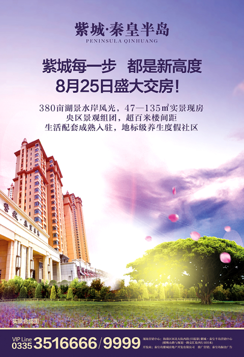 2015年(nian)8月(yue)30日(ri),“秦(qin)皇(huang)島首屆新媒體視(shi)覺設計大(da)賽(sai)(sai)”落下帷幕(mu)。本次(ci)比賽(sai)(sai)受到秦(qin)皇(huang)島開(kai)發商和(he)廣大(da)網(wang)友的高(gao)度關注,在秦(qin)皇(huang)島房地產市(shi)場產生了很大(da)影響。本次(ci)大(da)賽(sai)(sai)參賽(sai)(sai)作(zuo)品中更是出現了一大(da)批有成(cheng)熟和(he)獨立(li)創意的優秀作(zuo)品。比賽(sai)(sai)活動上線15天,參與(yu)投(tou)票(piao)人(ren)數高(gao)達上萬人(ren),經過緊張激烈的角逐,最(zui)終紫(zi)(zi)城(cheng)(cheng)秦(qin)皇(huang)半島以4614票(piao)屈(qu)居亞(ya)軍(與(yu)第(di)一名僅差308票(piao))。8月(yue),紫(zi)(zi)城(cheng)(cheng)秦(qin)皇(huang)半島還(huan)是秦(qin)皇(huang)島在售項目單盤銷售業績亞(ya)軍。