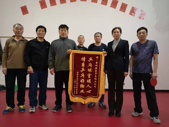 2018年(nian)12月18日,紫(zi)城(cheng)?秦(qin)皇半島管理處錢(qian)經理收(shou)到業(ye)主送來一(yi)面題(ti)有“乒(ping)(ping)乓球(qiu)室(shi)暖人心,情系(xi)乒(ping)(ping)乓好物(wu)業(ye)”的(de)錦(jin)旗,感謝物(wu)業(ye)細(xi)致入微、盡(jin)心盡(jin)責的(de)服(fu)務。
