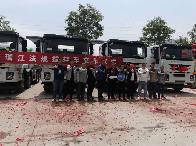 2020年5月28日,上午(wu)10點整(zheng)(zheng), 在恒(heng)熱商砼公司廠區(qu)內,6臺紅巖瑞江攪拌(ban)車整(zheng)(zheng)齊排列(lie),鞭炮齊鳴(ming),商砼公司總(zong)(zong)經理王東、副總(zong)(zong)經理楊生(sheng)洪、攪拌(ban)車司機及廠家(jia)代表共(gong)同參加(jia)了隆重(zhong)的交車儀式(shi),并合影留念見證了這(zhe)一歷史時(shi)刻(ke)。