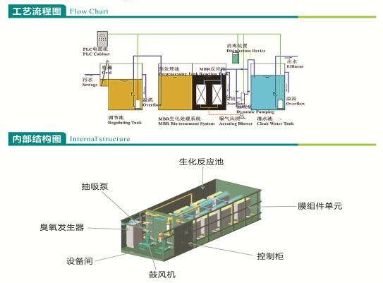 設備的核心是膜生物反應器(Membrance bio reactor, 簡(jian)稱MBR)就是將(jiang)生物技術與膜的高效(xiao)分(fen)離技術集(ji)成的一種新(xin)型高效(xiao)污水處理(li)與回收工藝(yi)。